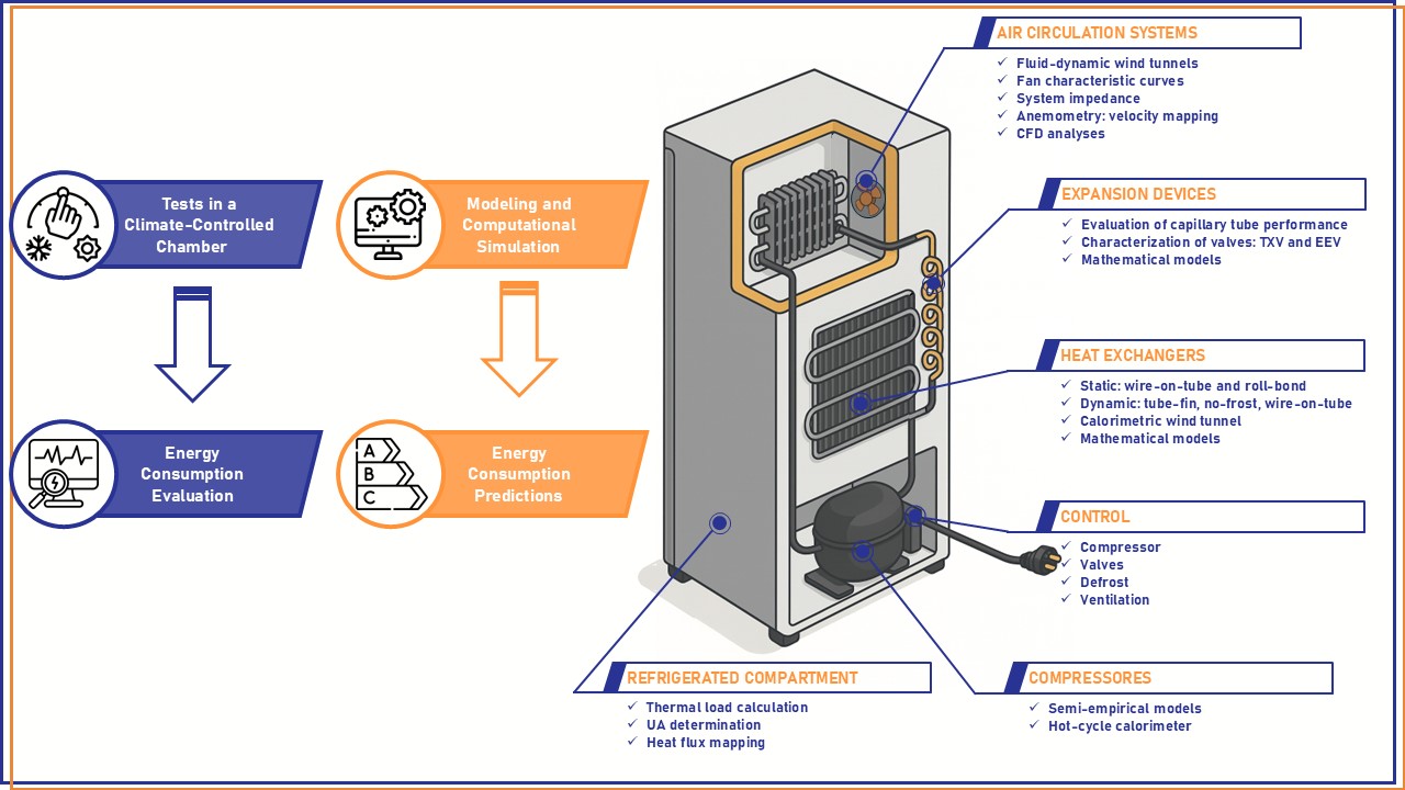 We specialize in experimental analysis and computational simulation of different architectures of domestic refrigerators and their components, aiming at reducing